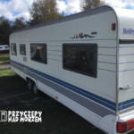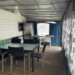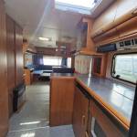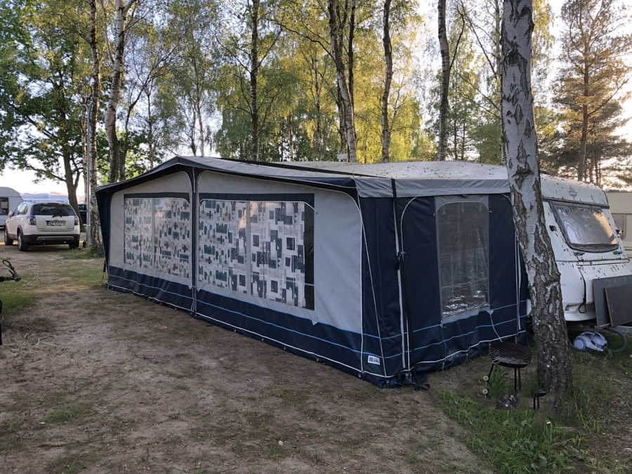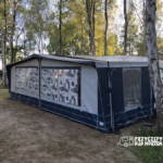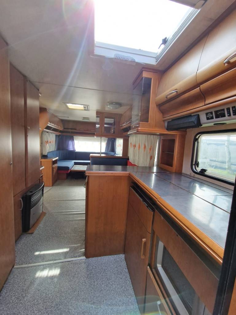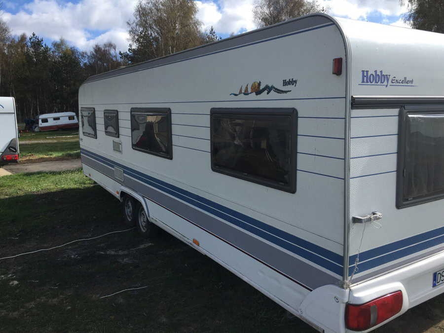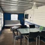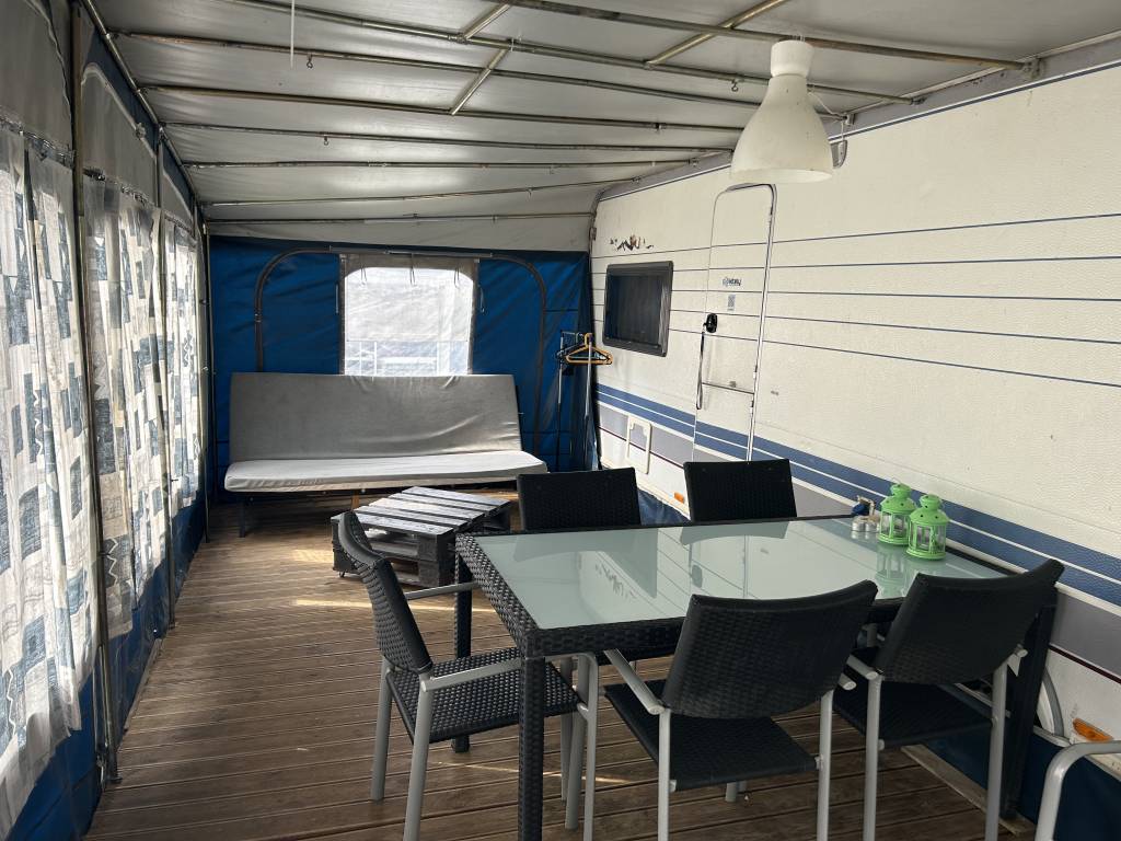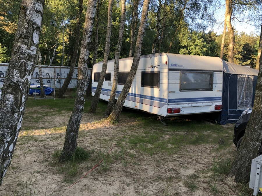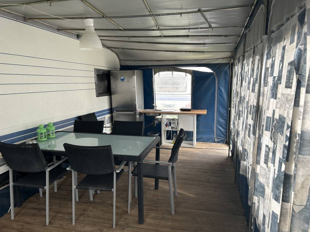 Przyczepa 5-6 osobowa, posiada dwie części sypialne, każda z podwójnym łóżkiem (oddzieloną drzwiami sypialnię z łóżkiem małżeńskim , salon z kanapą i stolikiem, które zamieniają się w trzyosobowe łóżko),oprócz tego jedno łóżko jednoosobowe .W przyczepie łazienka w niej umywalka i toaleta z wc chemicznym.Aneks kuchenny, kuchenka trzy palniki, kuchenka mikrofalowa,lodówka,zlew.